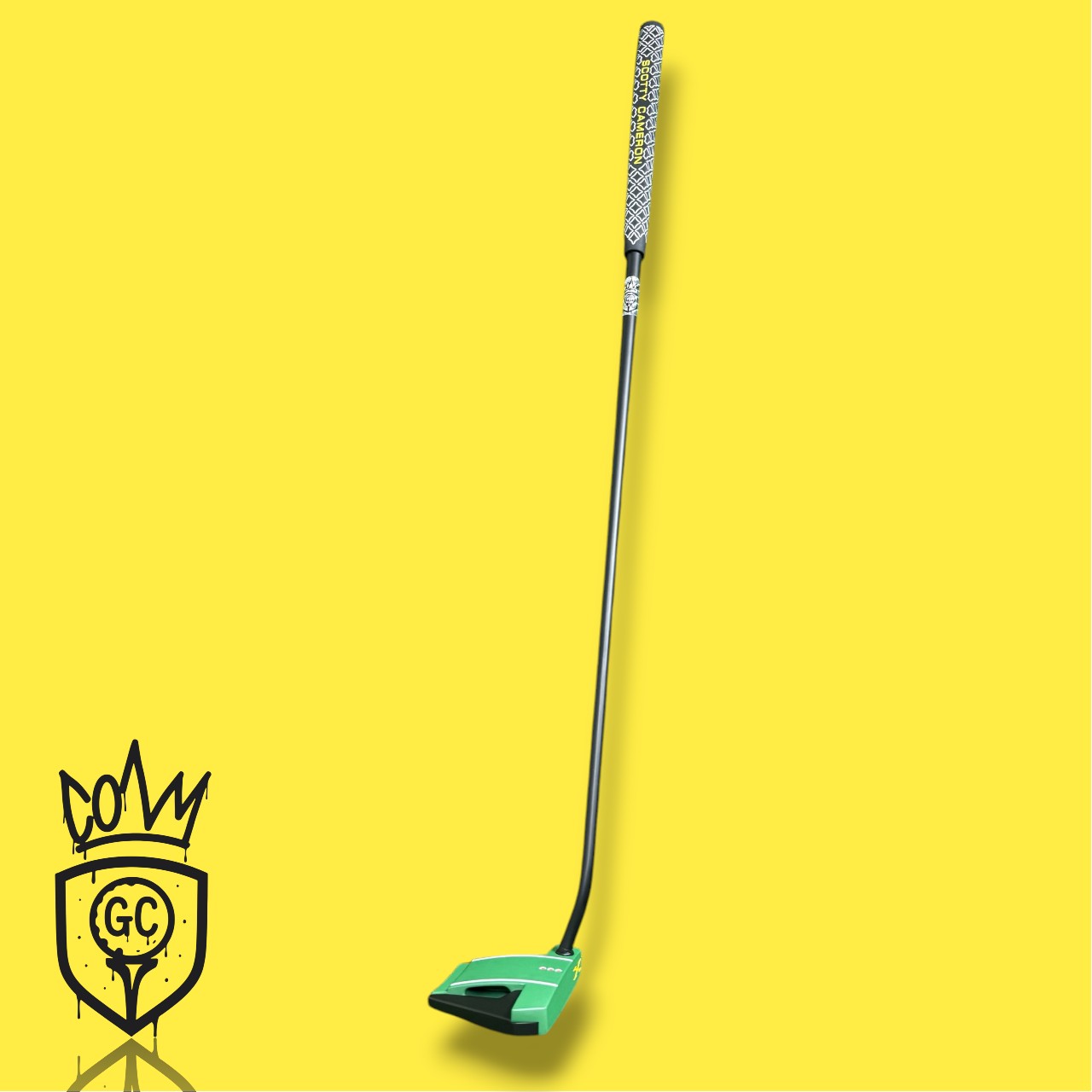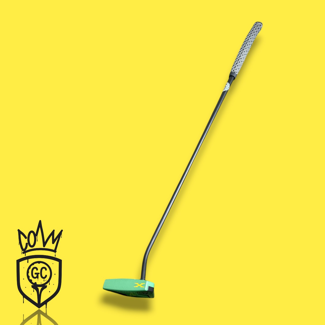 A fully customized Phantom X 7.5, finished in a striking Masters-green Cerakote with jet-black wings and bright yellow + red detailing. Clean triple-dot alignment. Smooth slant-neck flow. Elite mallet stability.