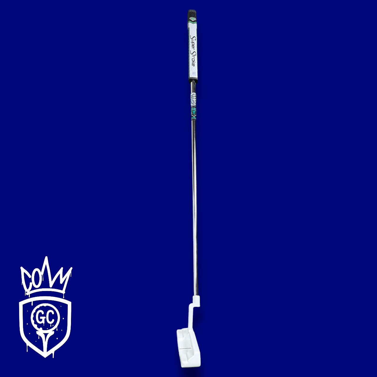 This 35" Toulon San Diego is fully refinished in a crisp tour white Cerakote, paired with deep milled geometry, multi-color Toulon detailing, and a premium SuperStroke grip. The face milling is razor-sharp. The lines are pure. The whole build feels like it belongs on a tour truck rack.